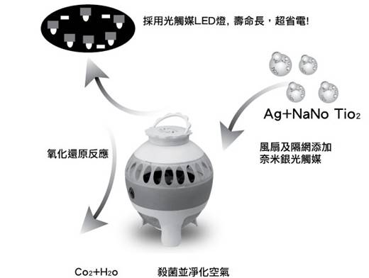 2. 利用奈米光觸媒激發產生二氧化碳,且具有抗菌效果。