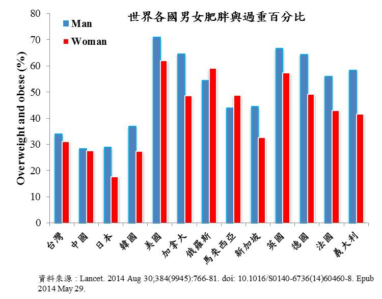 根據研究統計,世界各國男女肥胖人口比例皆不低!!